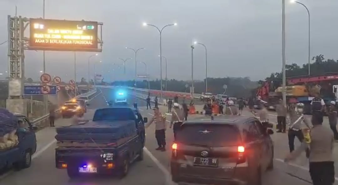 “Bismillahirrohmaanirrohim, pada hari ini, Hari Selasa, tanggal 24 September, pukul 17 lewat 55 menit, tol Bocimi get Parungkuda dibuka kembali, Alhamdulillahi robbil’aalamiin,” ungkap AKBP Dr. Samian, menandai pembukaan.