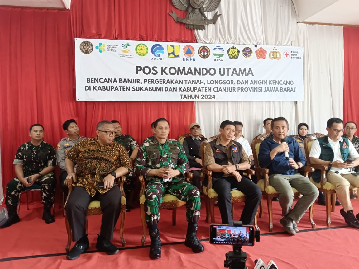 Sebelum konferensi pers, Kepala Badan Nasional Penanggulangan Bencana (BNPB) RI, Letjen TNI Suharyanto memimpin Rapat Koordinasi (Rakor) penanggulangan bencana banjir, longsor dan tanah bergerak, di Pos Komando Utama, Aula Pendopo Sukabumi. Rakor dihadiri oleh Danrem 061/Suryakancana , Pj Gubernur Jabar, BPBD, Bupati Sukabumi dan Sekda, Sekda Cianjur, Kapolres Sukabumi dan kota, Dandim 0607 Kogta Sukabumi, Dandim 0622 Kabupaten Sukabumi, dan para pejabat terkait lainnya. (* Nurdiansyah)