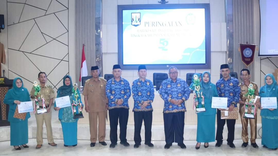 Dalam kesempatan tersebut diserahkan berbagi penghargaan kepada pemenang lomba dalam rangka memperingati Hari Kesatuan Gerak (HKG) PKK ke-52 oleh Bupati Sukabumi. (*)