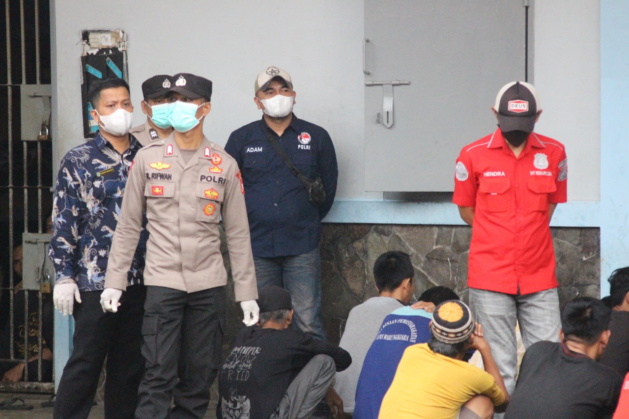 Penggeledahan blok hunian dan tes urine dilakukan oleh APH terhadap warga binaan di Lapas Warungkiara. (Foto : Humas Lapas)