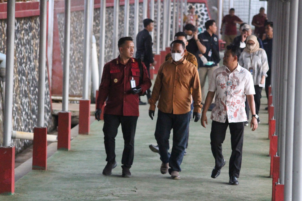 Kepala Lapas Kelas IIA Warungkiara, Irfan (kiri-kemeja merah) bersama APH dalam kegiatan Apel Siaga Pencegahan Pemberantasan Penyalahgunaan dan Peredaran Gelap Narkoba (P4GN), Kamis (26/9/2024). Foto : Humas Lapas