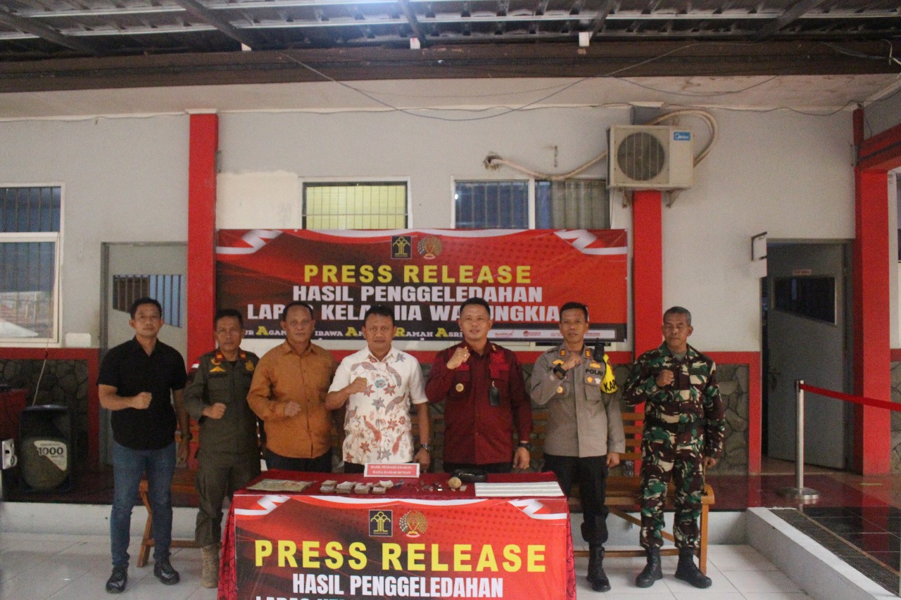 Press Release hasil penggeledahan di Lapas Kelas IIA Warungkiara, Kamis (26/9/2024). Foto : Humas lapas Warungkiara.