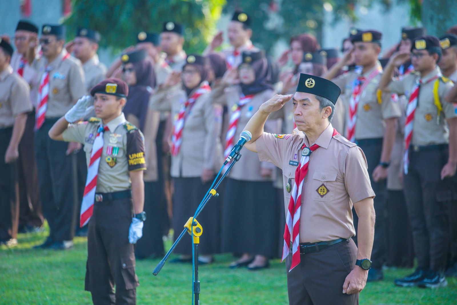 FOKUSMEDIANEWS.COM, Memperingati Hari Pramuka ke-63 tahun 2024, Gerakan Pramuka Kwartir Cabang (Kwarcab) Kota Bogor kembali melakukan ziarah kubur ke Taman Makam Pahlawan (TMP) Dreded di Kecamatan Bogor Selatan, Sabtu (10/8/2024).