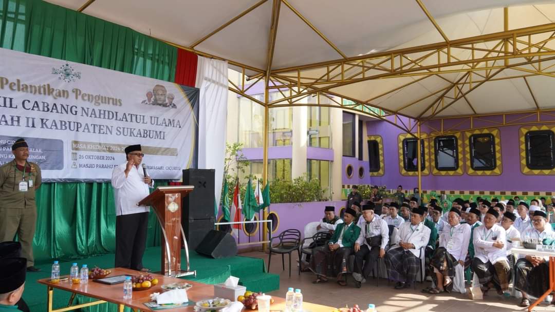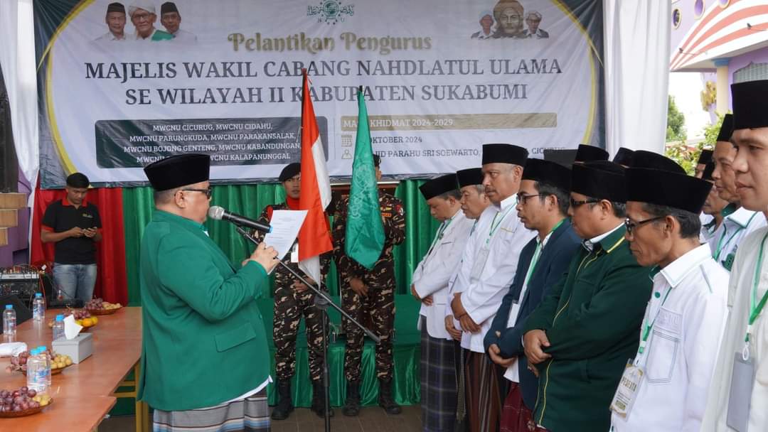 FOKUSMEDIANEWS.COM, KAB SUKABUMI – Ketua Pengurus Cabang Nahdlatul Ulama (PCNU) Kabupaten Sukabumi KH. E.S Mubarok melantik jajaran Pengurus Majelis Wakil Cabang Nahdlatul Ulama (MWCNU) Wilayah 2 Kabupaten Sukabumi, Sabtu, 26 Oktober 2024. Pengurus MWCNU yang dilantik meliputi Kecamatan Parungkuda, Bojonggenteng, Parakansalak, Cicurug, Cidahu, Kalapanunggal, Kabandungan, dan Ciambar.
