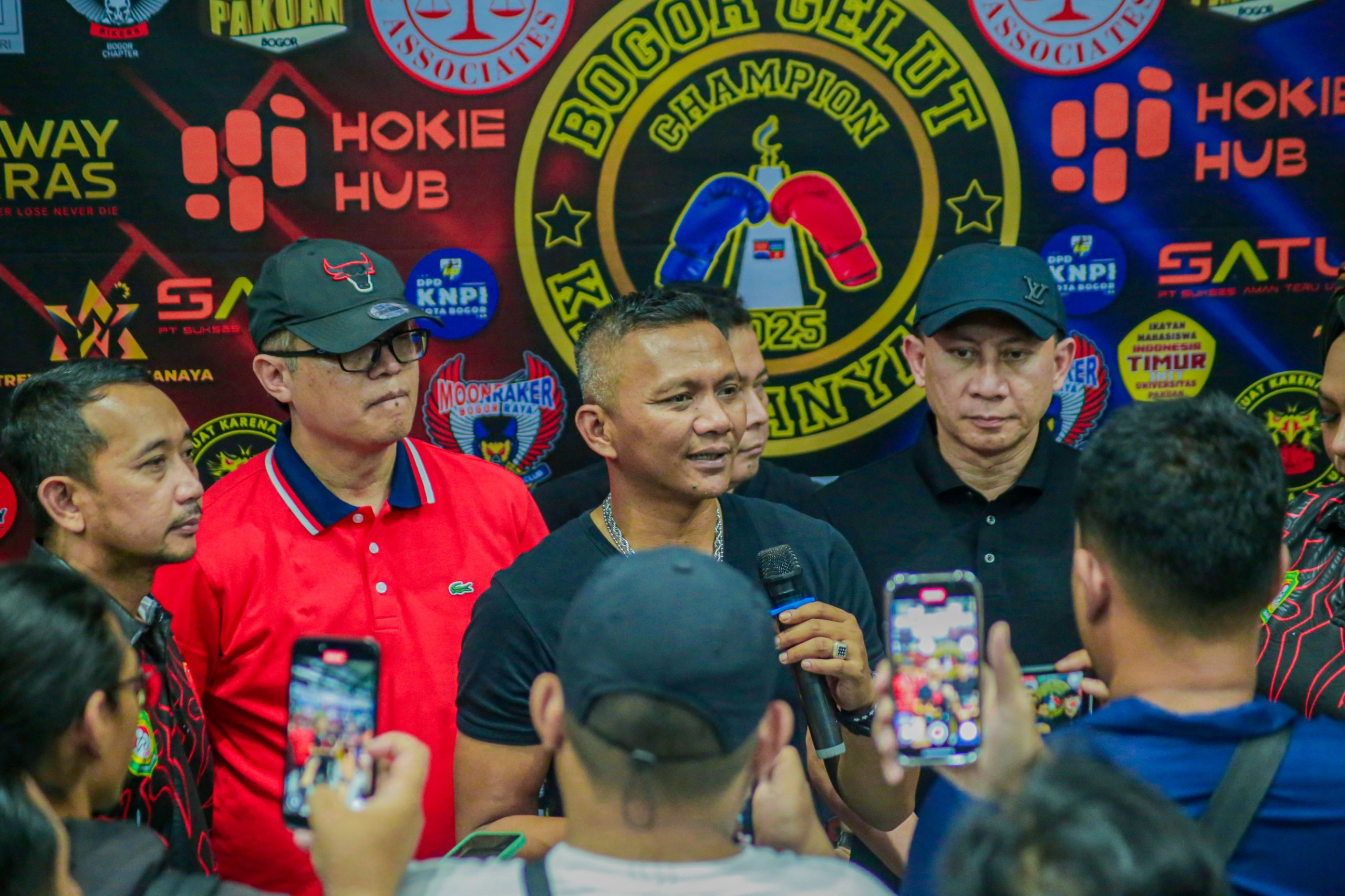 “Para petarung kita instruksikan kepada Pertina untuk wajib ikut pertandingan pada Porprov 2026. Seperti kata Bung Karno, kita butuh 10 pemuda untuk mengguncang dunia dan hari ini kita butuh 10 pemuda-pemudi Bogor untuk berlaga dalam Porprov 2026,” seru Jenal Mutaqin.