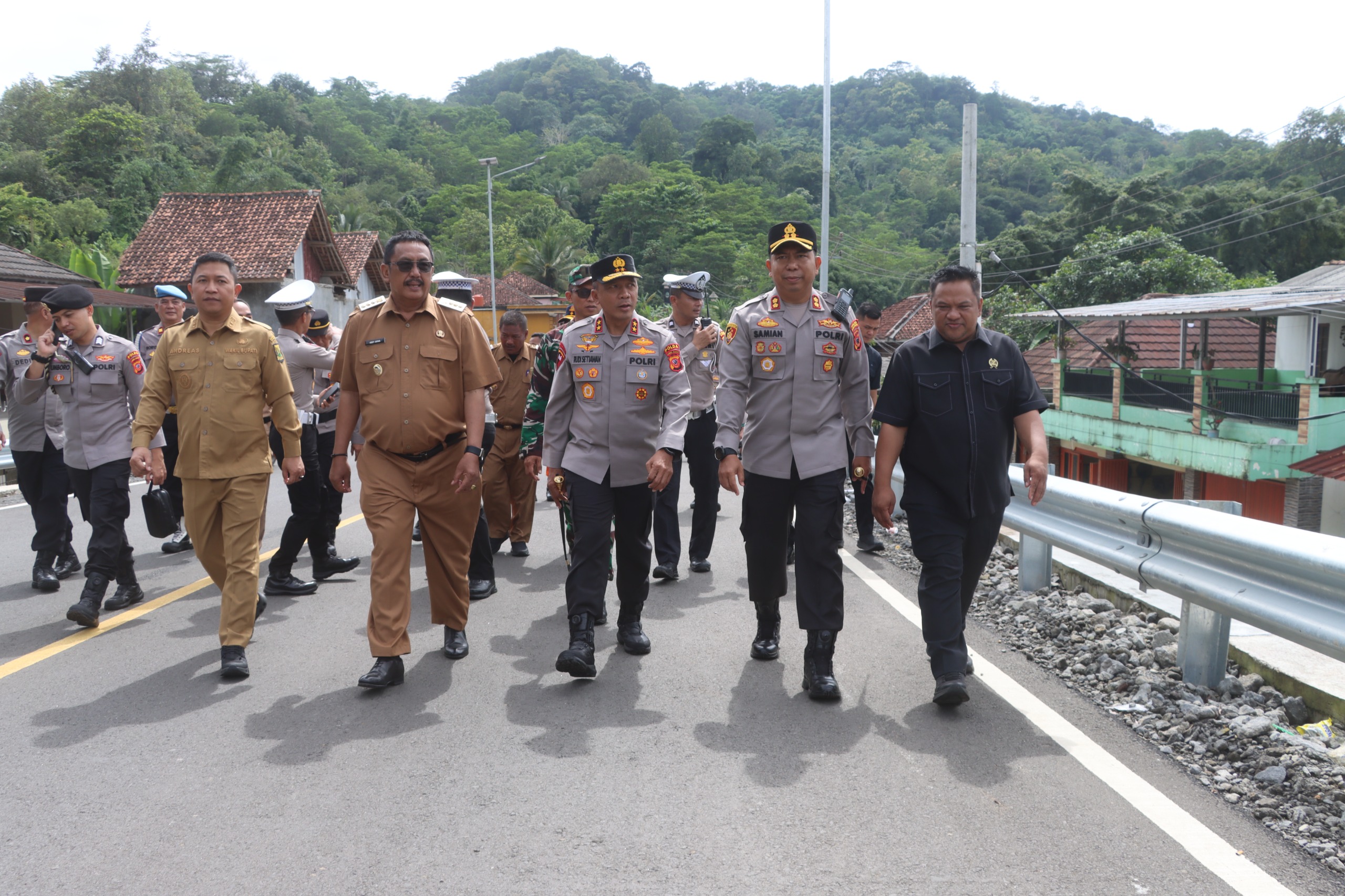 FOKUSMEDIANEWS.COM, SUKABUMI – Ketua Dewan Perwakilan Rakyat Daerah (DPRD) Kabupaten Sukabumi, Budi Azhar Mutawali bersama Bupati Sukabumi H Asep Japar, Wakil Bupati Sukabumi H Andreas, serta unsur Forkopimda Kabupaten Sukabumi, turut mendampingi kunjungan kerja Kapolda Jawa Barat, Irjen Pol Rudi Setiawan dalam rangka pengecekan kesiapan Operasi Lilin Lodaya 2025, di Cisolok Kabupaten Sukabumi, Senin (8/12/2025).