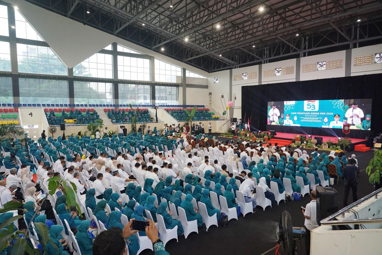 “Ini adalah bentuk komitmen tulus kami untuk bersama-sama membangun keluarga yang kuat, penuh kasih, dan penuh harapan di Kota Bogor. Kami berusaha hadir di tengah-tengah keluarga, terutama mereka yang membutuhkan,” ujar Yantie Rachim saat memberikan sambutan pada acara puncak HKG PKK yang berlangsung di Gedung Gimnasium Vokasi IPB, Jalan Lodaya II, Kota Bogor Rabu (30/7/2025).