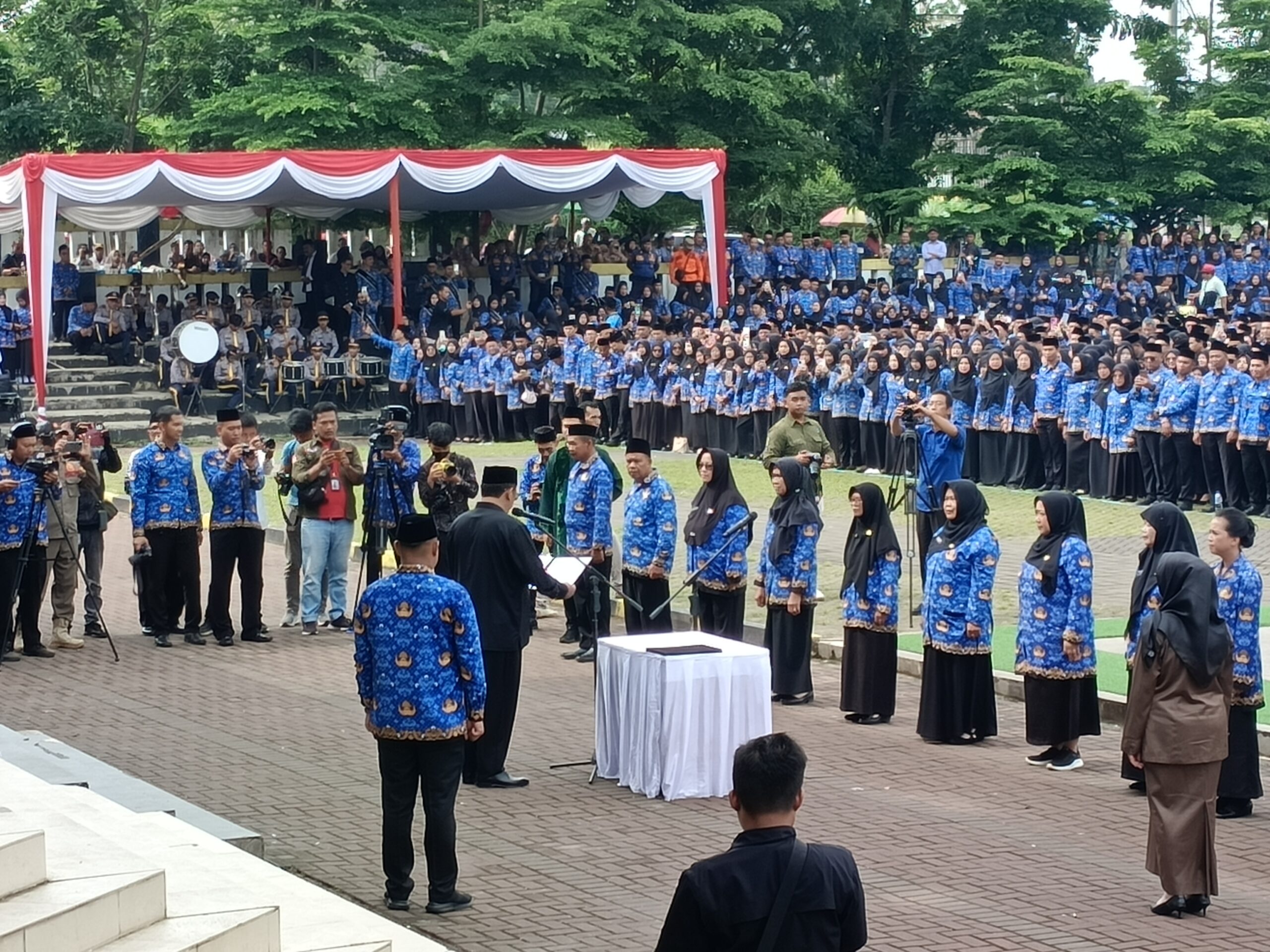 FOKUSMEDIANEWS.COM, SUKABUMI – Pemerintah Kabupaten Sukabumi resmi melantik 8.164 Pegawai Pemerintah dengan Perjanjian Kerja (PPPK) Paruh Waktu dalam rangkaian peringatan Hari Korps Pegawai Republik Indonesia (KORPRI) ke-54, HUT PGRI ke-80, serta Hari Guru Nasional 2025. Kegiatan ini digelar di Lapangan Cangehgar, Palabuhanratu, pada Kamis (4/12/2025).
