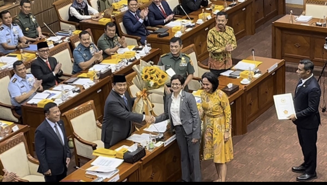 FOKUSMEDIANEWS.COM, JAKARTA – Menteri Pertahanan RI Prabowo Subianto mengikuti rapat kerja (raker) terakhir dengan Komisi I DPR RI, Rabu (25/9/2024). Raker membahas laporan panitia kerja, pembacaan naskah RUU, pendapat akhir minifraksi, pendapat akhir pemerintah, penandatanganan naskah RUU, dan pengambilan keputusan untuk melanjutkan pada pembicaraan tingkat II sejumlah RUU kerja sama bidang pertahanan.