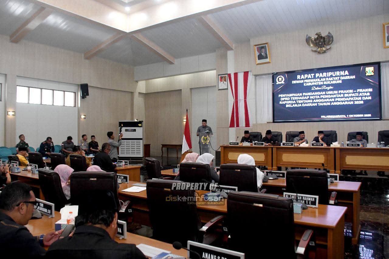 Rapat paripurna yang juga dihadiri Bupati Sukabumi H Asep Japar bersama Wakil Bupati H Andreas itu diselenggarakan pada Rabu (1/10/2025), di ruang sidang DPRD Kabupaten Sukabumi. Rapat dipimpin oleh Ketua DPRD, Budi Azhar Mutawali.