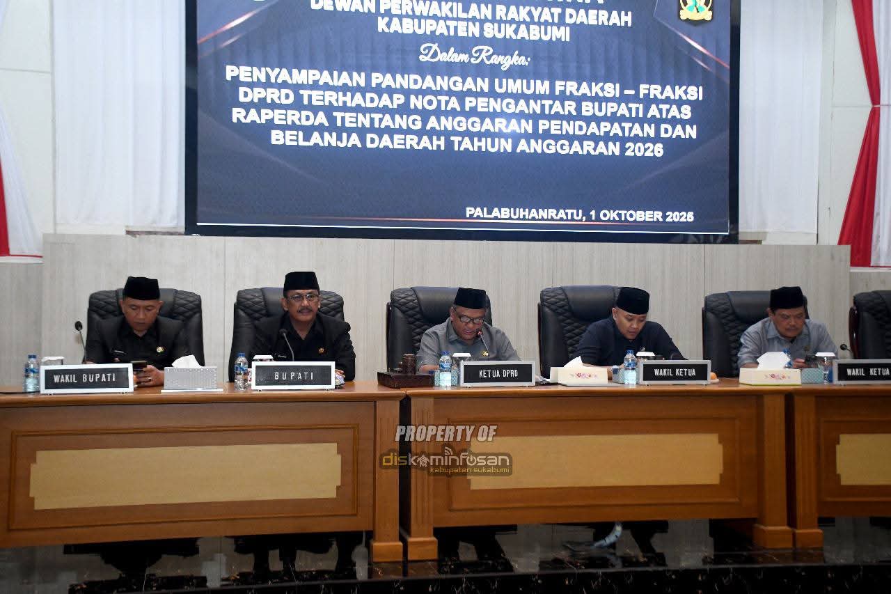 FOKUSMEDIANEWS.COM, SUKABUMI – DPRD Kabupaten Sukabumi kembali menggelar Rapat Paripurna dengan agenda utama penyampaian pandangan umum fraksi-fraksi terhadap nota pengantar Bupati atas Rancangan Peraturan Daerah (Raperda) tentang Anggaran Pendapatan dan Belanja Daerah (APBD) Tahun Anggaran 2026.