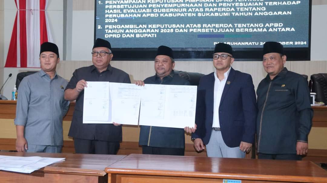 Raperda tentang perubahan APBD TA 2024 dan Rancangan Peraturan Bupati Sukabumi tentang penjabaran perubahan APBD TA 2024 telah dibahas dan disepakati bersama antara badan anggaran DPRD dengan tim anggaran pemerintah daerah.