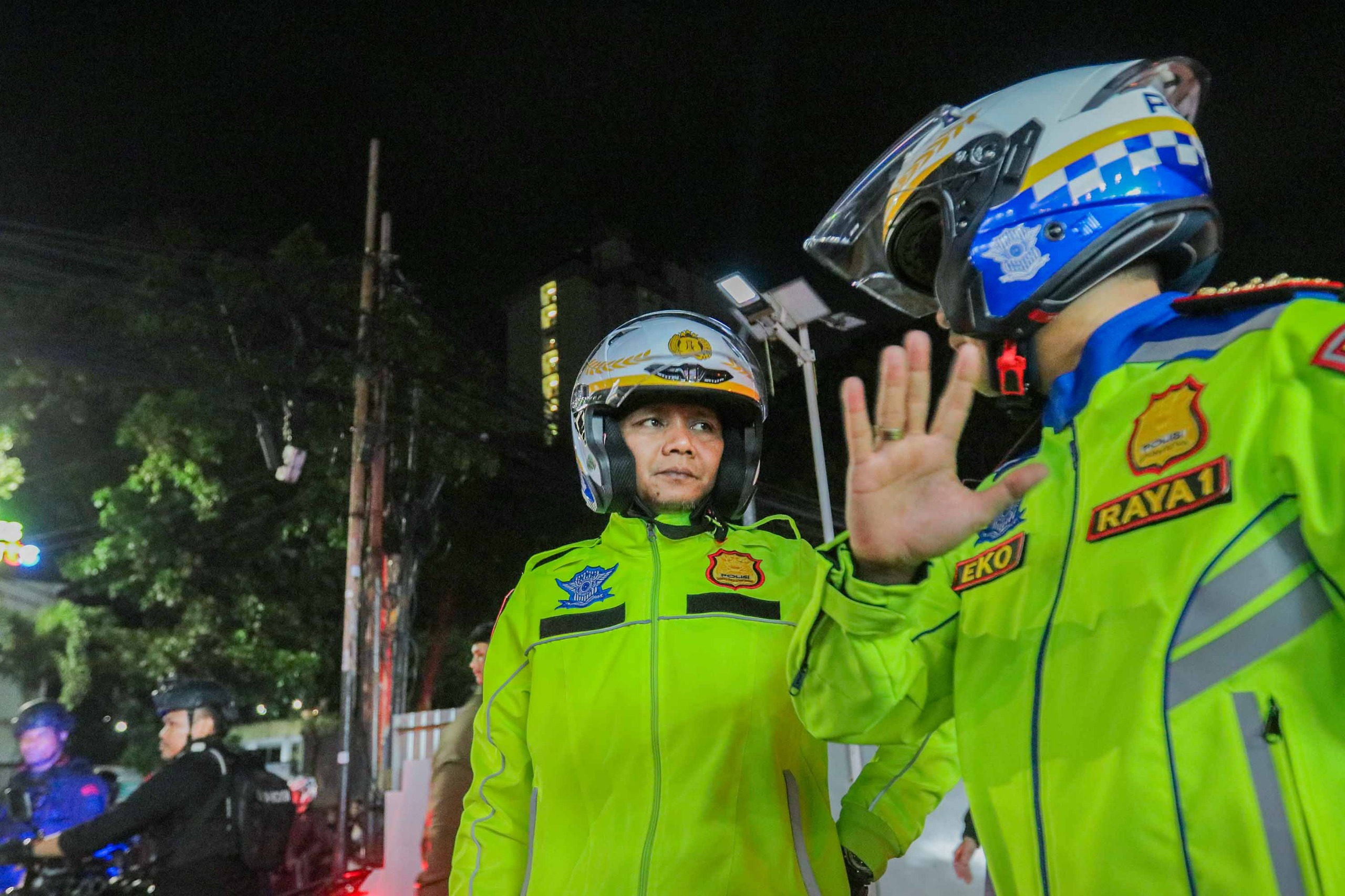 Patroli dilakukan menggunakan roda dua yang dimulai sejak pukul 00.00 dan mengitari beberapa titik kerumunan.