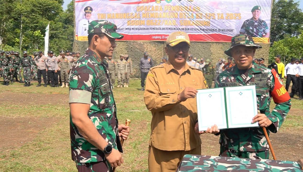 “Berbagai pembangunan yang menyentuh masyarakat terwujud dalam program TMMD. Baik fisik maupun nonfisik,” ujar Bupati Sukabumi H. Asep Japar saat menjadi Inspektur Upacara Pembukaan TMMD ke 125 tahun anggaran 2025 di Lapang Sepakbola Desa Langkapjaya, Rabu (23/7/2025).
