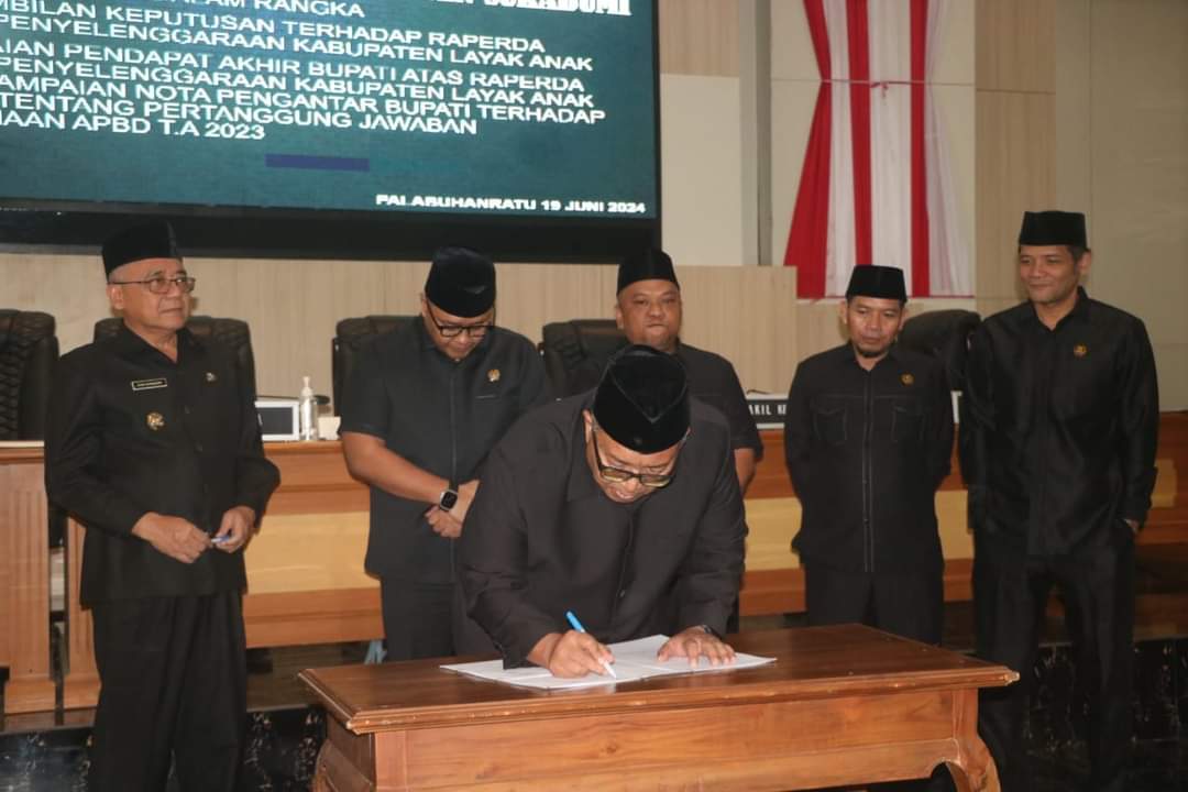 Hal itu disampaikannya saat menghadiri Rapat Paripurna DPRD Kabupaten Sukabumi dalam rangka Pengambilan Keputusan terhadap Raperda tentang Kabupaten Layak Anak (KLA) dan Penyampaian Nota Pengantar Bupati atas Raperda tentang Laporan Pertanggungjawaban Pelaksanaan APBD Tahun Anggaran 2023, di Ruang Rapat Paripurna DPRD, Rabu, 19 Juni 2024. Pada kegiatan tersebut Bupati Sukabumi H. Marwan Hamami didampingi Wakil Bupati Sukabumi H. Iyos Somantri.