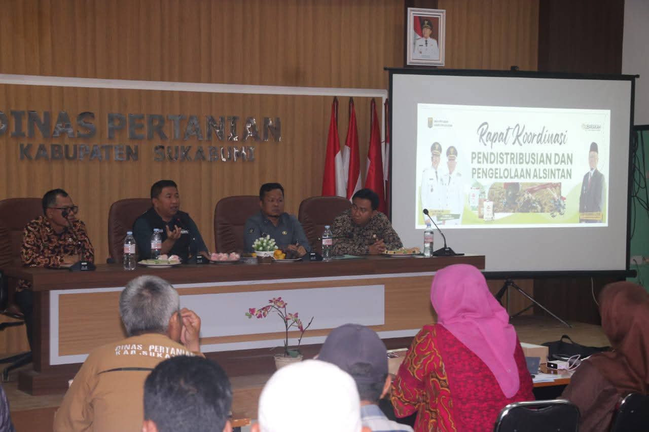 Rapat koorfdinasi pendistribusian dan pengeloaan alat mesin pertanian di Aula Dinas Pertanian Kabupaten Sukabumi. (foto : istimewa)