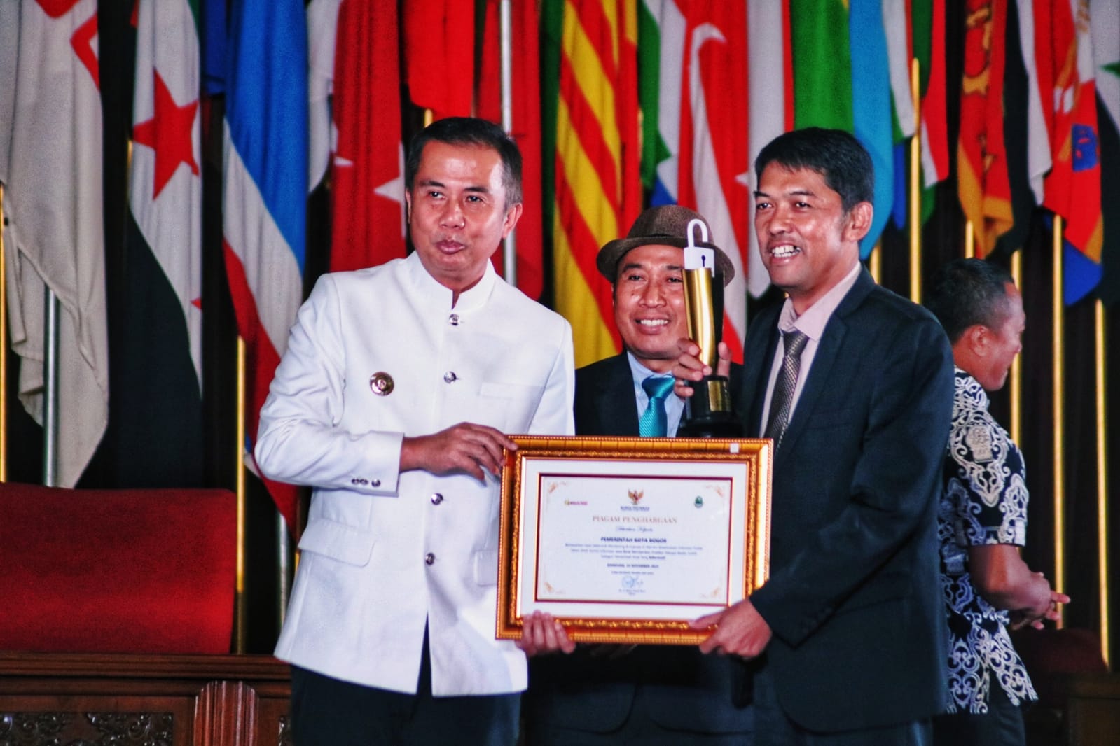 Penghargaan diserahkan langsung Penjabat (Pj) Gubernur Jawa Barat, Bey Machmudin kepada Kepala Dinas Komunikasi dan Informatika (Diskominfo) Kota Bogor, Rahmat Hidayat yang mewakili Pemkot Bogor di Gedung Merdeka, Kota Bandung, Kamis (14/11/2024).