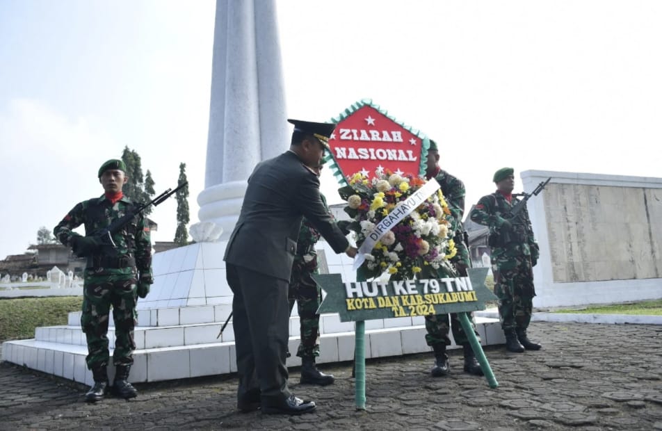 Ziarah Nasional yang digelar dalam rangka memperingati HUT ke-79 TNI itu dipimpin oleh oleh Komandan Kodim 0607/Kota Sukabumi, Letkol Inf Yudhi Hariyanto yang bertindak sebagai inspektur upacara, diikuti oleh sejumlah aparatur sipil negara (ASN) lingkup Pemkot Sukabumi, anggota TNI-Polri, serta para pelajar dan mahasiswa.