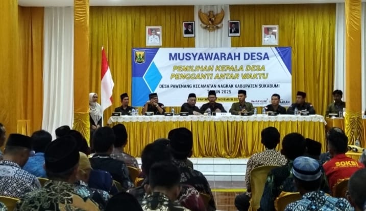 FOKUSMEDIANEWS.COM, SUKABUMI – Panitia Pemilihan Kepala Desa Pengganti Antar Waktu (PAW) Desa Pawenang, Kecamatan Nagrak, Kabupaten Sukabumi, menggelar proses pemilihan melalui Musyawarah Desa (Musdes) Badan Permusyawaratan Desa (BPD) Pawenang, bertempat di Aula Bale Pawenang, Minggu 23/11/2025. Pemilihan Kades PAW Pawenang diikuti dua calon yaitu Nomor urutan 1 Hilman Nulhakim dan Nomor urutan 2 Zhohar Ismaya Subur.