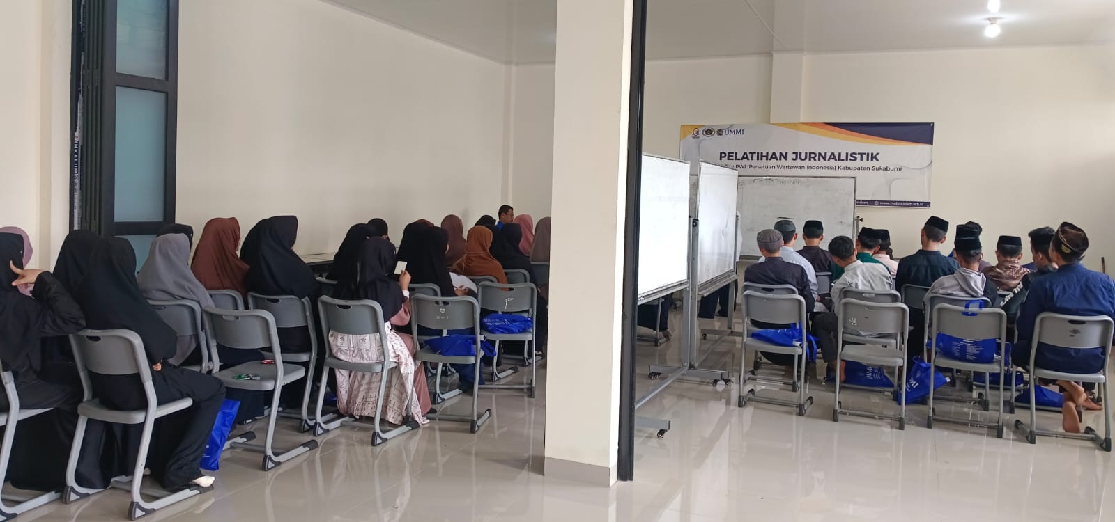 Suasana pelatihan jurnalistik yang diselenggarakan oleh PWI Kabupaten Sukabumi di ponpes Mabda Islam Kecamatan Nyalindung, Kabupaten Sukabumi. (Foto : Dien/Fokus Media News)