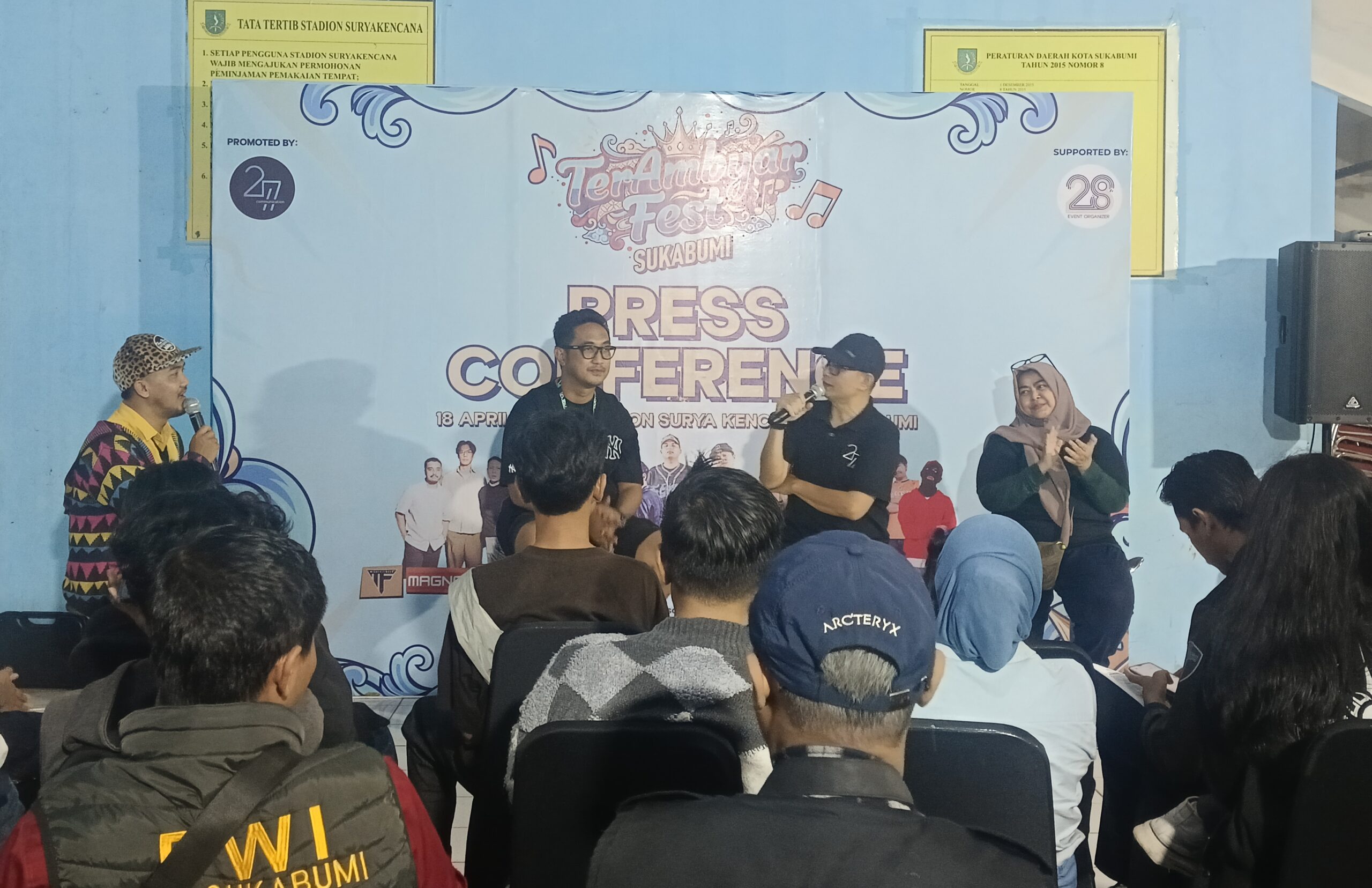 Konferensi pers yang digelar oleh 27 Communications jelang event Terambyar Fest 2026 di Stadion Suryakancana Kota Sukabumi, Sabtu (18/4/2026). Foto: Fokusmedianews