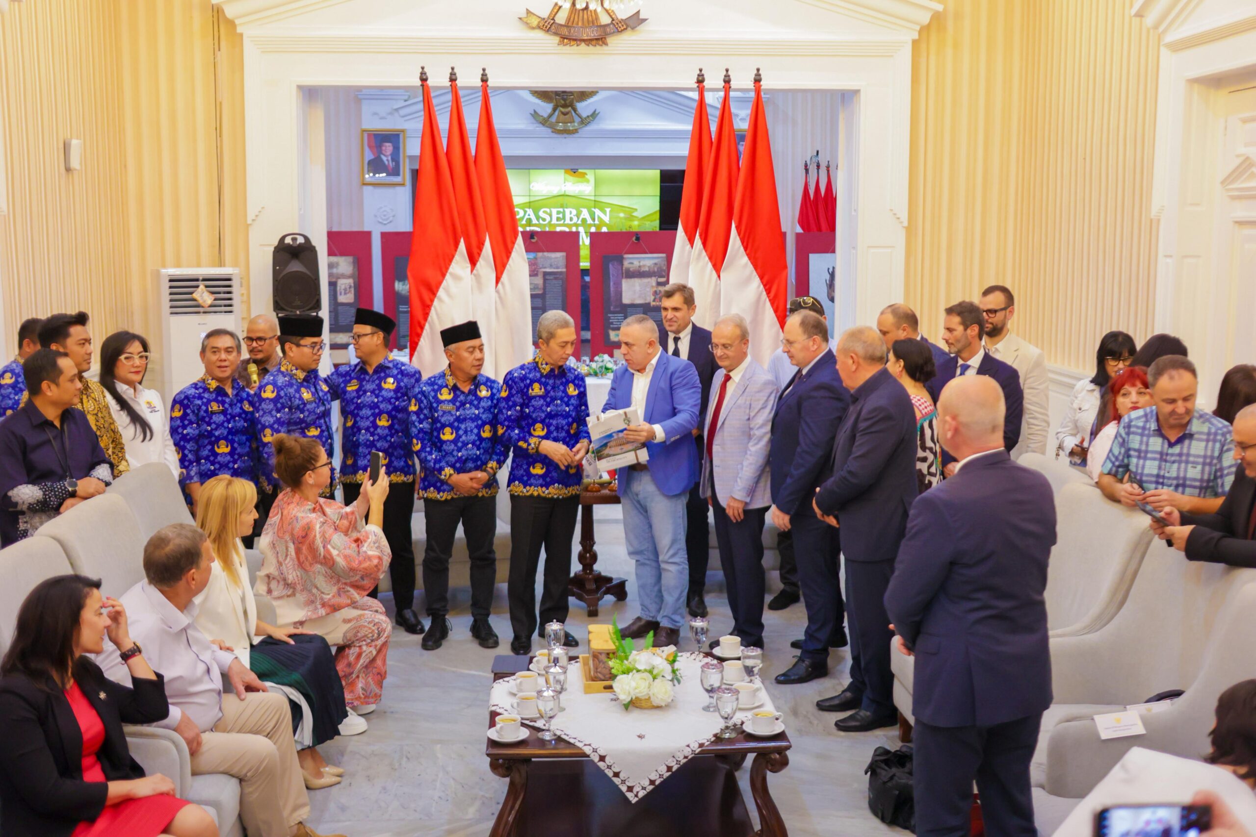 FOKUSMEDIANEWS.COM, KOTA BOGOR – Wali Kota Bogor, Dedie A. Rachim menyambut kunjungan kehormatan Direktur Eksekutif Asosiasi Pemerintah Kota Seluruh Indonesia (APEKSI) beserta Delegasi Kedutaan Besar Bulgaria untuk Indonesia di Paseban Suradipati, Balai Kota Bogor, Senin (1/12/2025).