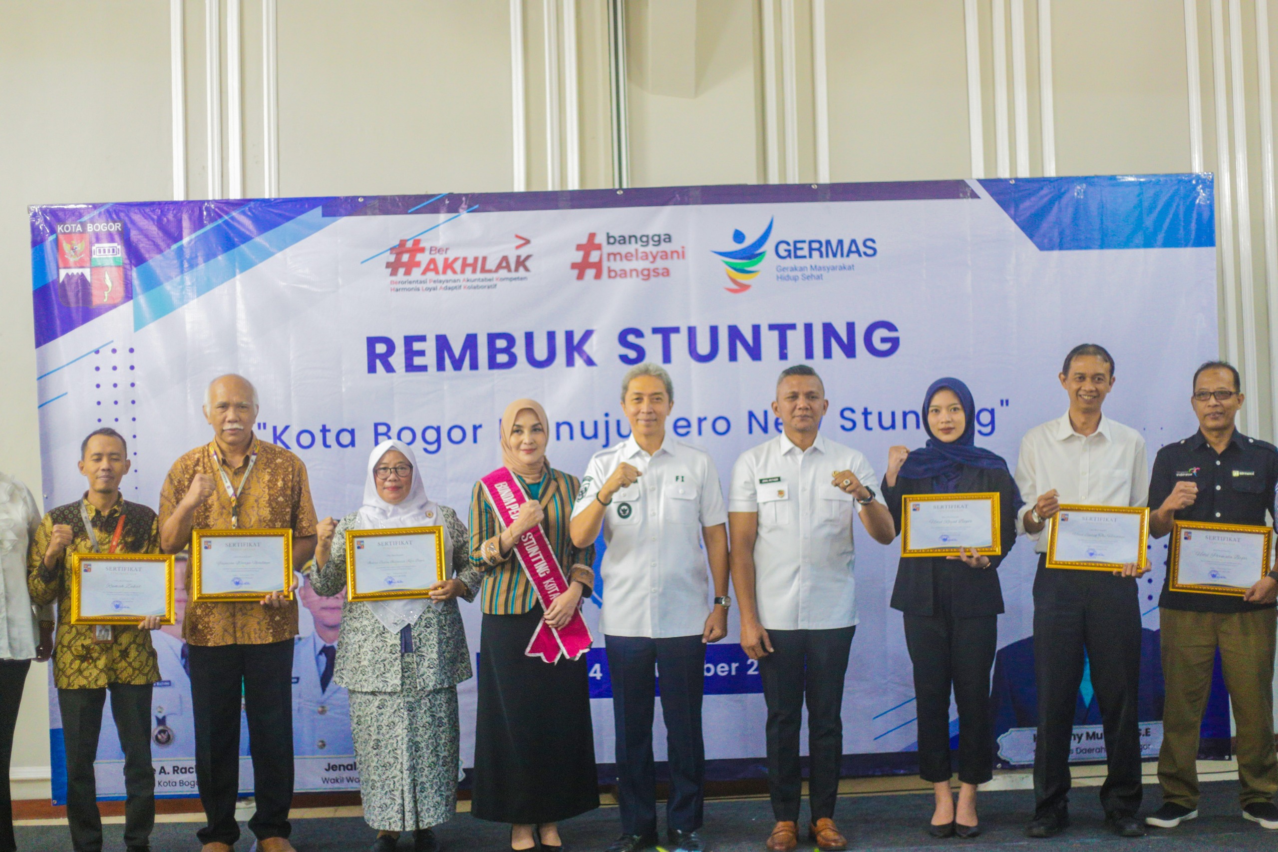 Foto bersama dalam kegiatan Rembuk Stunting Tingkat Kota Bogor yang berlangsung di Ballroom Hotel Royal, Jalan Ir. H. Juanda, Kota Bogor. (foto : ist)
