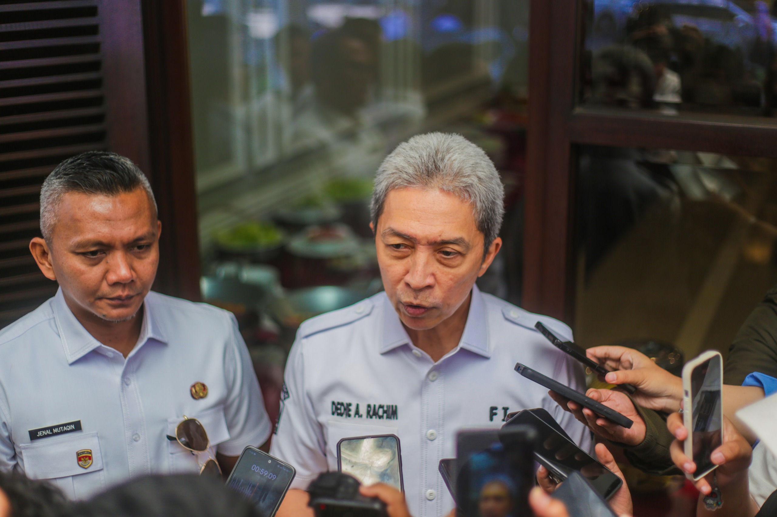 Wali Kota Bogor, Dedie A Rachim (kanan) didampingi Wakil Wali Kota Bogor, Jenal Mutaqin, diwawancarai awak media usai menghadiri Rembuk Stunting Tingkat Kota Bogor. (foto : ist)